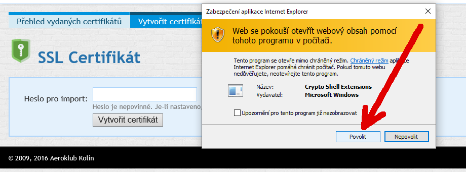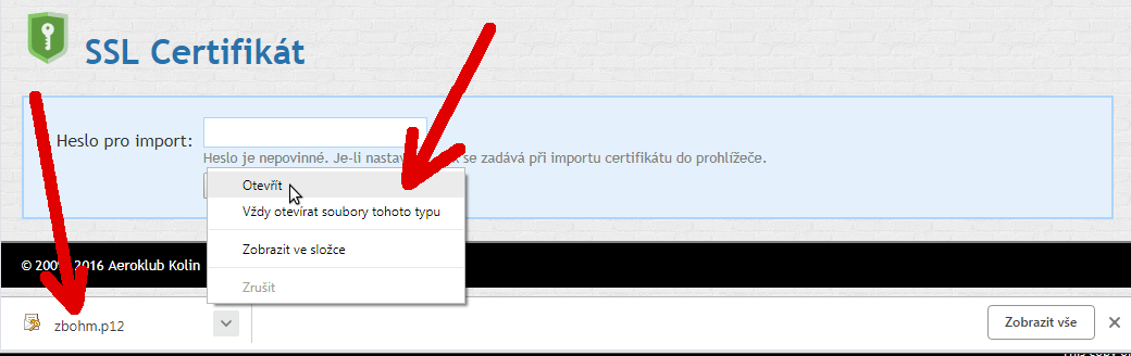 Certifikát je jen váš a do Klubka se neukládá. V Klubku se vede jen záznam o tom, že byl vydán. Nikdo jiný jej nesmí mít k dispozici. Pokud se stane, že vám certifikát někdo zcizí, tak v Klubku přihlašování přes tento certifikát vypněte. Jděte na stranu Přehled vydaných certifikátů, klikněte na zázam o příslušném certifikátu a přihlášení deaktivujte přepínačem "Přihlášení vypunuto". Pro vaše další přihlašování si vytvořte certifikát nový.